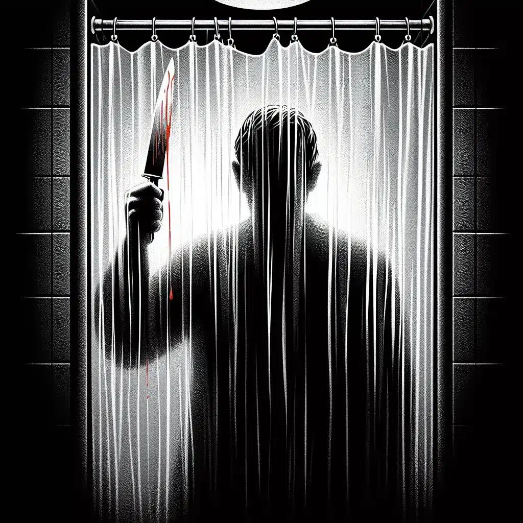 Após a conversa, Marion vai para o quarto. Norman deixa claro que, se precisar de algo, é só bater na parede. Marion, então, se prepara para um banho, enquanto Norman a espia por um buraco na parede, permitindo que ele a veja na frente da porta do banheiro. Ela toma um banho, e ele sobe para casa e se senta, aparentemente na cozinha, enquanto voltamos a ver Marion no banho de outro ângulo. Podemos ver através da cortina: a porta se abre, a cortina é jogada de lado e algo, alguém, uma coisa a esfaqueia com uma faca grande de açougueiro. É aí que a cena mais icônica do filme acontece. Ela grita, e esse algo continua a esfaqueá-la.